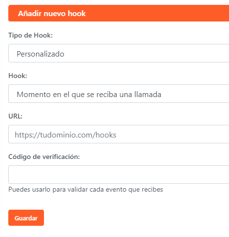 Los hooks o webhooks se usan para enviar notificaciones en tiempo real. En nuestro caso los usamos para enviarte notificaciones de nuevas llamadas y cuando la línea se descuelga y finaliza. Esto sucede en tiempo real mediante un POST a una URL que configuras en el panel.
